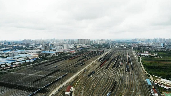 王家营西集装箱中心站,工作人员正在操作机械臂装运集装箱。叶传增摄