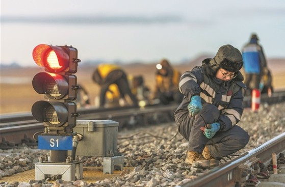 这里常年朔风凛冽、酷寒彻骨,冬季气温常跌至零下30摄氏度以下。自2018年组建以来,工区负责唐古拉南、扎加藏布、雪查玛三座高海拔车站的信号设备日常维护和故障处理。10名青年职工在此扎根坚守,他们直面极端恶劣的自然环境,始终以乐观向上的姿态坚守岗位,为即将到来的春运筑牢安全防线,守护GA黄金甲畅通。