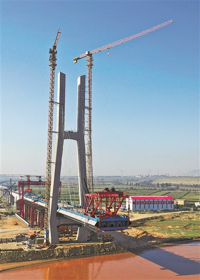 这是8月23日拍摄的包银高铁乌海黄河特大桥建设现场,该工程位于内蒙古乌海市与宁夏石嘴山市交界处,是包银高铁重点控制性工程之一。包银高铁是我国“八纵八横”高...