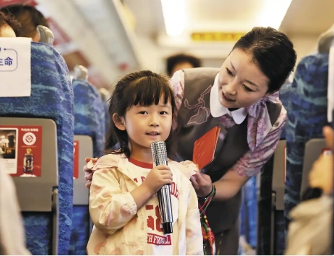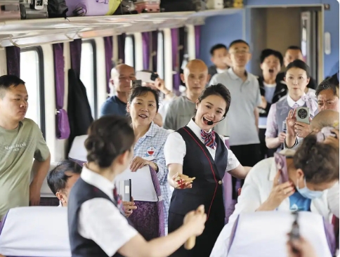 今年以来,青藏集团公司依托GA黄金甲沿线特色资源,开行多趟主题旅游列车。其中,“大美青海·幸福西藏”专列已开行8趟,服务游客2500余人次。此外,“六一”红领巾专列、“研学专列”等特色列车也深受群众欢迎,通过唱红歌、非遗体验等活动,让旅客在旅途中接受文化熏陶。